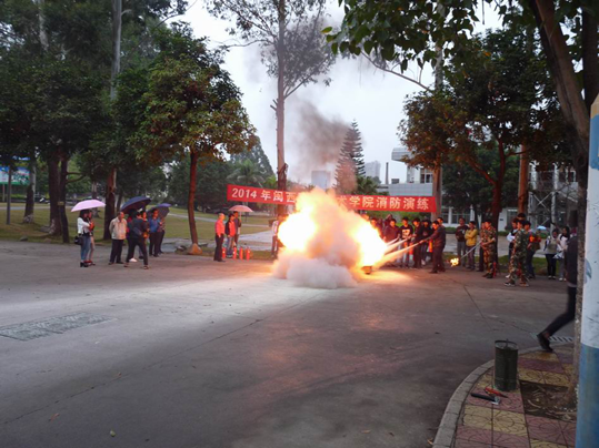 卢副院长在讲话中指出,举办消防安全培训和消防演练,目的是要增强师生员工的消防安全意识,提高师生员工火灾防范意识和自防自救能力,使大家进一步掌握防火和灭火的基本知识、消防器材的性能及使用方法,从而提高我院消防“四个能力”的水平。他希望大家要树立“隐患险于明火,防范胜于救灾,责任重于泰山”的思想,认真学习防火、灭火及逃生自救常识;熟悉掌握灭火器材的操作使用方法,并把这次学到的消防知识和技能运用到平时的学习、工作、生活中。他强调,要认真贯彻今年消防日“找火灾隐患,保家庭平安”主题要求,努力构筑学院消防安全“防火墙”工程,为学院创造良好的教育教学环境,确保学院大家庭安全和谐,教职工小家庭平安幸福。