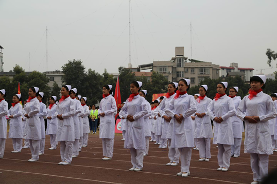 上午8时30分,踏着激昂奋进的《运动员进行曲》的节奏,身着制式服装的国旗护卫队护卫国旗走过主席台。彩旗队、锣鼓队、花束队、裁判员队伍及13支系(部)代表队迈着矫健而整齐的步伐,高喊着嘹亮的口号,或挥舞鲜花、彩旗,或演练舞蹈,或变化着精心编排的队形,顺次通过主席台,接受校领导和全校师生的检阅,展现了我院广大师生积极向上的精神风貌。医护代表队以整齐的队形、良好的风貌展现在大家面前,成为本届校运会入场式一道亮丽的风景,给大家留下了深刻的印象。