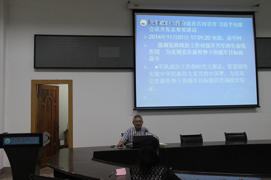 院长来永宝教授作题为《古田会议及其伟大意义》专题报告。他结合日前在我市上杭县古田镇召开的全军政治工作会议及习近平总书记发表重要讲话内容,从红四军入闽、古田会议的缘起及召开、古田会议的历史意义等方面,深入浅出地阐述了古田会议召开的历史背景,并深刻剖析了古田会议的伟大现实意义。报告语言生动,史实详尽,用古田会议精神照亮青年人的心。