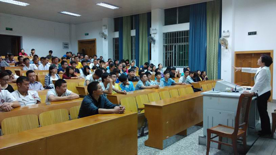 10月15日晚,我院在办公楼一楼影视厅举行食品卫生与安全讲座。龙岩市卫生监督所罗小玲科长应邀主讲。后勤处相关负责人,膳食科全体工作人员,膳管督察队全体学生干部和南(实训)校区全体食堂从业人员等近100人参加讲座。