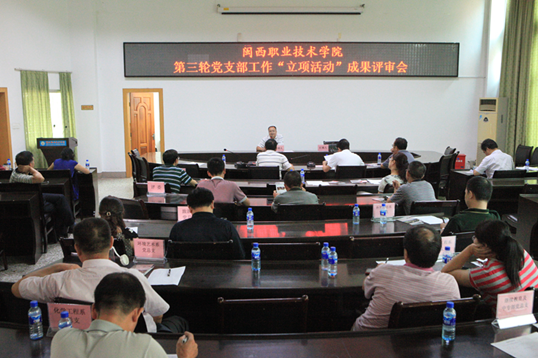 9月11日下午,我院在办公楼二楼会议室举行第三轮党支部工作“立项活动”项目评审会。市委讲师团副团长陈再兴,院领导吴新业、卢兆梅,院长助理李伟闽,评审委员会成员,党总支负责人,各项目汇报人,共计38人出席。评审会由副院长卢兆梅主持。
