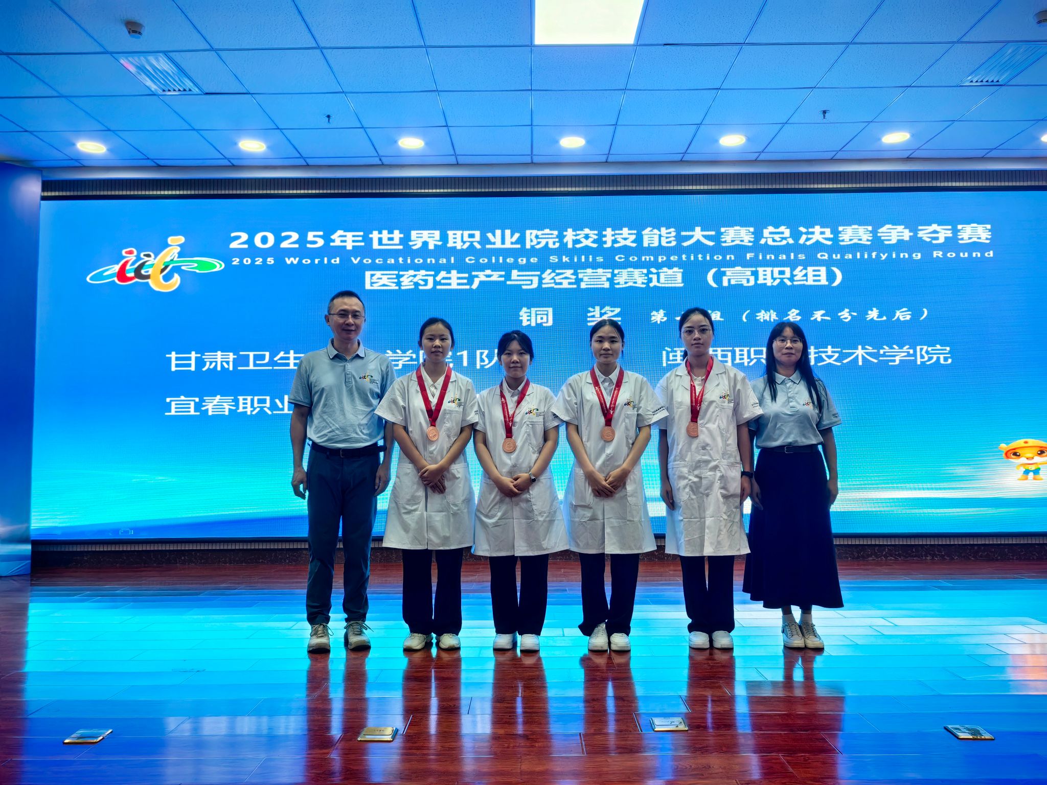2025年8月27日至9月1日,2025年世界职业院校技能大赛总决赛争夺赛医药生产与经营赛道(高职组)在山西药科职业学院举行,本次比赛共有来自全国26个省(直辖市)、4个自治区和新疆生产建设兵团的154支参赛队伍,565名参赛选手同台竞技,共同角逐技能高地。MG冰球医学护理学院曹扬远、魏岚两位老师指导的阙童飞、陈平平、汤晗钰、张雨煌参赛团队夺得该赛道铜奖,展现了MG冰球在医药职业教育领域的育人成效。