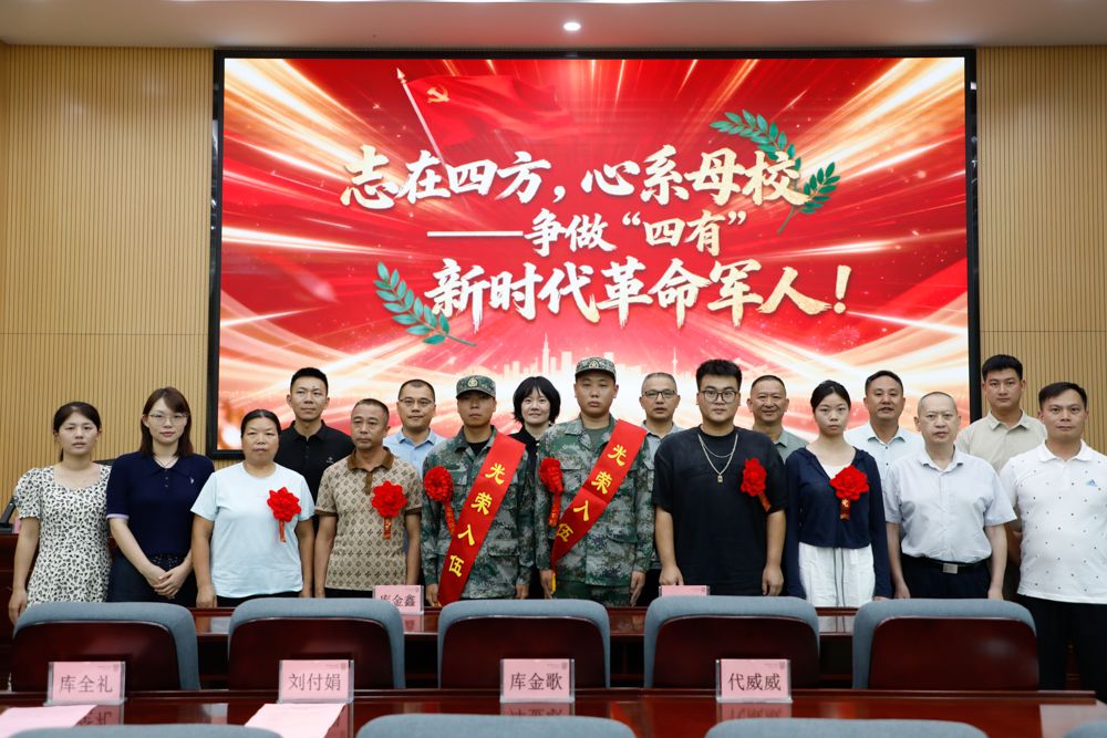 志在四方,心系母校,争做“四有”新时代革命军人。2025年9月12日下午,MG冰球在协成楼第一会议室举行2025年下半年大学生新兵入伍欢送会。副校长连玲娜,学生工作处、安全保卫处(武装部)负责人及相关工作人员,信息工程学院、文化与旅游学院相关负责人、辅导员、师生代表,2位大学生入伍新兵、新兵家长代表及“红旗不倒”军魂社学生干部等100余人共同见证这一庄严时刻。