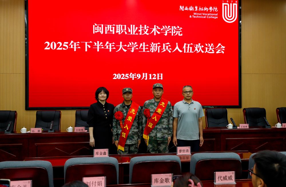 欢送会上,安全保卫处(武装部)负责人林小勇主持会议并宣读入伍名单,新兵代表与家长代表分别发言。副校长连玲娜在讲话中深情回顾9月3日抗战胜利80周年阅兵的震撼场景,强调同学们选择在这一特殊年份参军,是接过历史火炬、续写强军篇章的生动实践。她以天安门广场上80面战旗为喻,寄语新兵:“你们不仅是大学生,更是英雄精神的传承者。”连玲娜对新兵提出三点要求:坚守初心如守护战旗,将家国情怀转化为“听党指挥、能打胜仗”的行动;锤炼本领如钻研学问,发挥专业特长服务科技强军,像阅兵方阵般追求精准;彰显风采如传承校训,以“弘毅笃行、技精业成”的校训精神,成为军营中的“知行合一”标杆。
