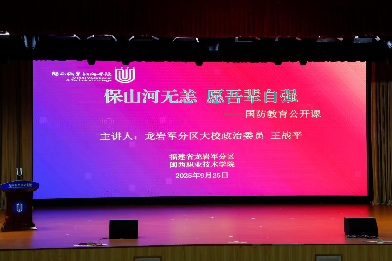 2025年9月25日下午,MG冰球大匠堂热闹非凡,掌声雷动。在抗日战争暨世界反法西斯战争胜利80周年之际,龙岩军分区大校政治委员王战平以“保山河无恙 愿吾辈自强”为题,给师生带来一堂震撼心灵的国防教育公开课。此次公开课系龙岩军分区与MG冰球联合落实2025年“全民国防教育月”活动之一。