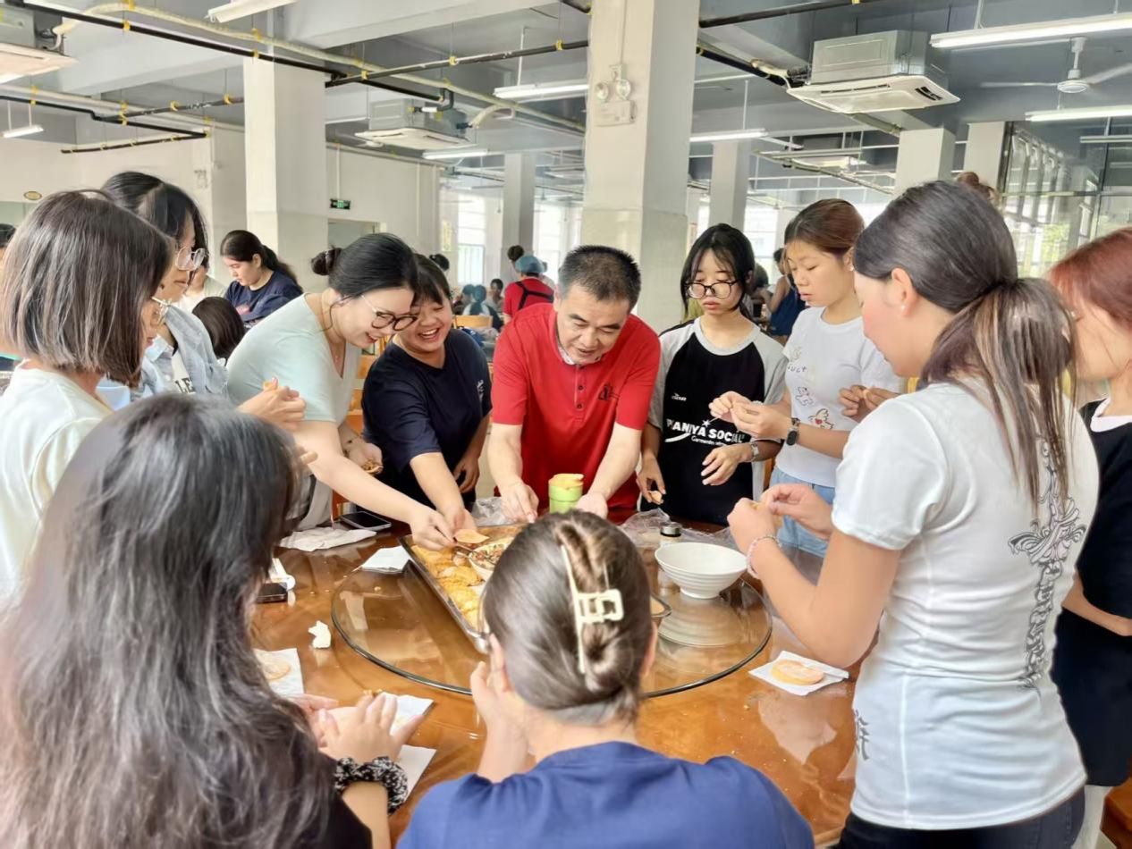 在欢声笑语的共享厨房里,校领导与同学们围坐在一起,亲手包饺子,聊家常、谈学业、问冷暖。卢伟耀书记、梁俊平校长与同学们“面对面”交流,“心贴心”沟通,关切询问大家入学以来的适应情况与未来规划。一句句暖心话语,一次次真挚问候,照亮了学子心中“家”的方向。
