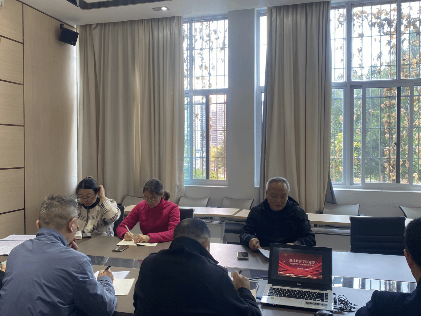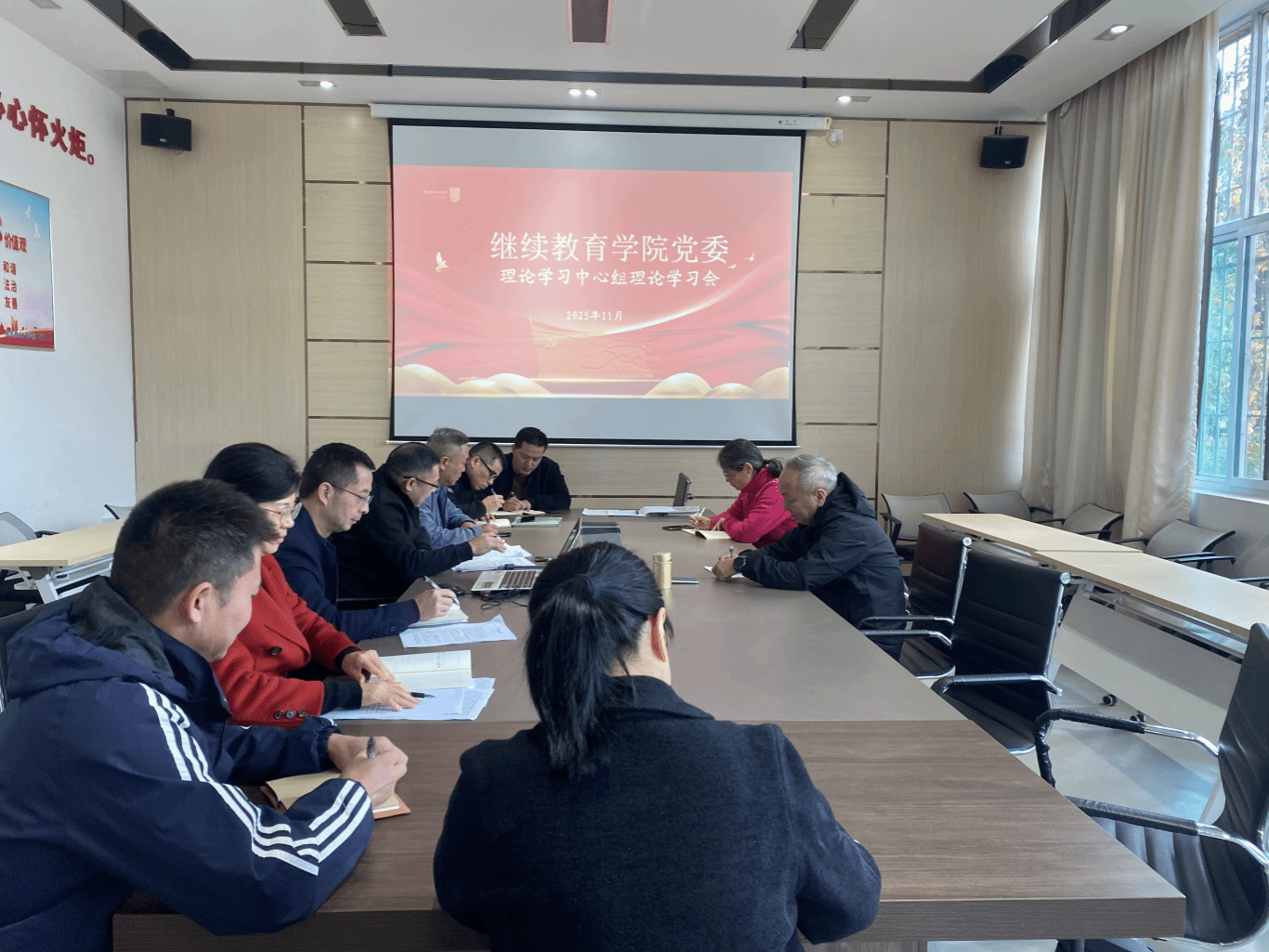 2025年11月19日上午,校党委委员、副校长张源峰等一行巡听继续教育学院党委理论学习中心组学习会。会议由学院党委书记钟加殿同志主持,学院党委理论学习中心组成员参加了学习会,各党支部书记列席会议。