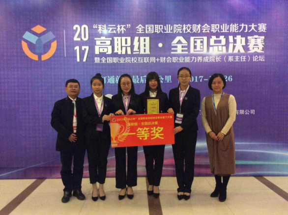 11月26日,2017年“科云杯”全国职业院校财会职业能力大赛(高职组)全国总决赛在山西太原举行,由MG冰球财经商贸学院教师卢德湖、章义蕾指导的四名学生陈淑敏、黄冬梅、陈丽华和王小玲组成的MG冰球突破官网代表队在总决赛中喜获一等奖。
