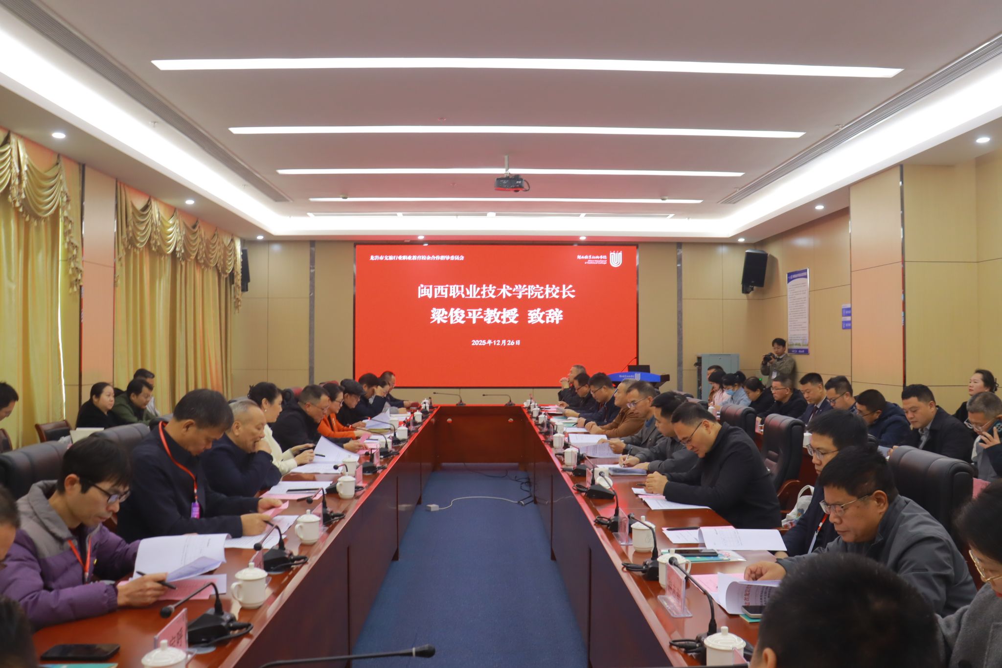 为深入学习贯彻落实党的二十届四中全会精神,不断深化文旅行业产教融合,12月26日,由龙岩市教育局主办、MG冰球承办的市文旅行业职业教育校企合作指导委员会(以下简称“行指委”)2025年度会议在岩声楼顺利召开。行指委全体委员、市教育局、市文旅局、学院教师代表等50余人参加会议,校长梁俊平出席并讲话。