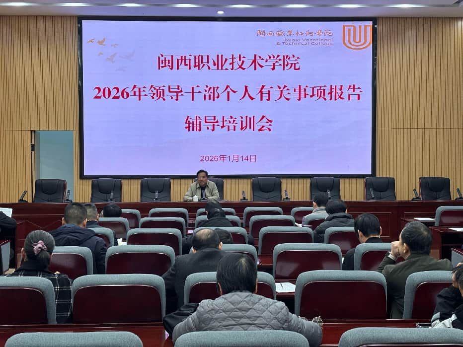 为深入学习贯彻习近平总书记关于领导干部个人有关事项报告工作的重要指示批示精神,贯彻落实新修订的《领导干部报告个人有关事项规定》精神,高质量做好2026年领导干部个人有关事项报告工作,2026年1月14日下午,校党委在协成楼第一会议室举行2026年领导干部个人有关事项报告辅导培训会。在家校领导,学校副处级干部参加了会议,会议由组织人事处处长陈驰同志主持。