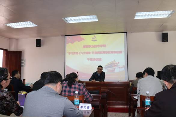 校长郑志强作了题为《以党的十九大精神为指引奋力谱写闽西职院发展新篇章》的专题报告。他对十九大精神进行了深入解读,要求中层以上干部要准确把握十九大精神,真正做到学懂弄通做实。他指出,贯彻落实十九大精神要体现在做大做强学校的各项具体工作之中。他强调,“做大”学校规模不仅要加大宿舍、教室和教学仪器设备等方面投入,而且更要加大招生力度,千方百计扩大在校学生规模。“做强”学校则要抓好以下五项工作:一要做好学校内部治理工作,科学完善各项制度,规范管理程序,提升决策水平。二要抓好干部队伍建设,提高干部队伍的执行力。三要做强师资力量,培养“匠心教师”。四要开展课程改革,提升教学质量。五要搭建平台,提升学校社会服务能力。