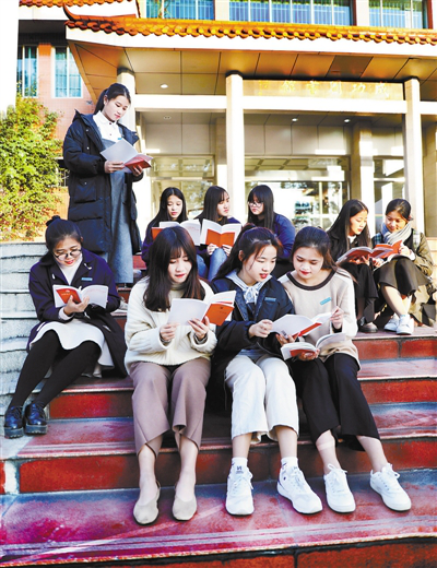 闽西日报:MG冰球突破官网学生在图书馆前学习十九大报告