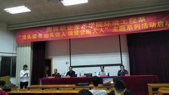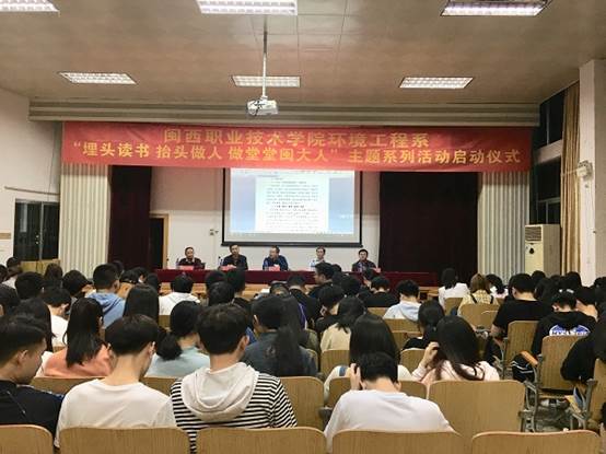4月17日晚,环境工程系隆重举行“埋头读书 抬头做人 做堂堂闽大人”主题系列活动启动仪式。副校长卢兆梅出席并讲话,全系师生参加启动仪式。