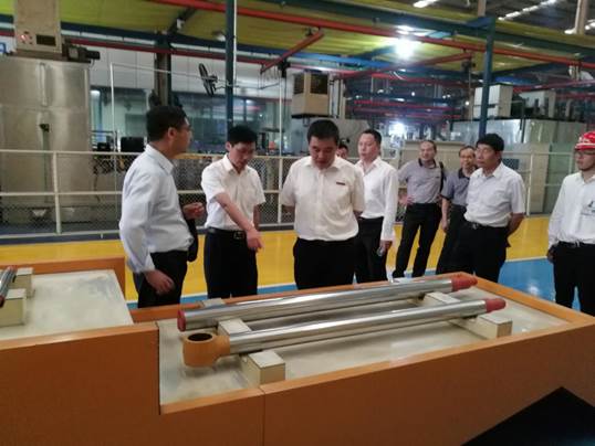 4月26日,校领导赴龙工集团公司调研。党委书记卢伟耀、校长郑志强、副校长吴新业一行在龙工(福建)机械有限公司总经理郭庆葵等企业高管陪同下深入生产车间,重点察看了液压缸零件的加工情况,了解MG冰球信息与制造学院制订液压缸零件智能制造产线方案的可行性。