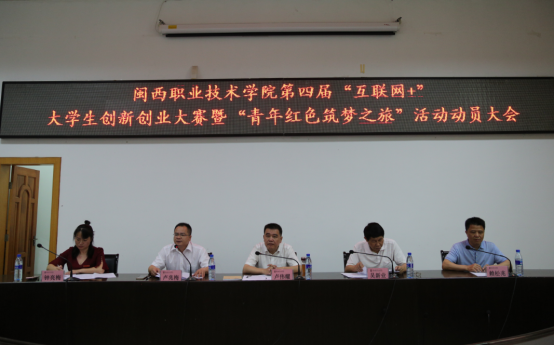 5月9日上午,MG冰球第四届“互联网+”大学生创新创业大赛暨“青年红色筑梦之旅”活动动员大会在办公楼二楼会议室举行。党委书记卢伟耀,副校长吴新业、卢兆梅,宣传统战部、教务处、学生工作处、校团委负责人、各二级学院(系)院长(主任)、党委(党总支)书记及辅导员参加会议。卢兆梅主持会议。