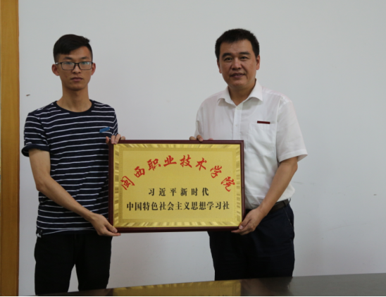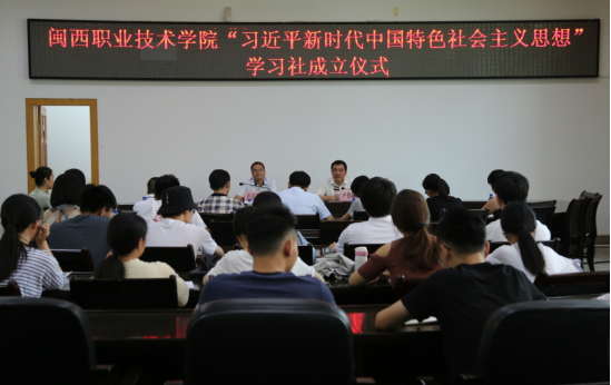 成立仪式在与会同志齐唱国歌中开始,卢兆梅宣读了《关于开展大学生“习近平新时代中国特色社会主义思想”学习社系列工作实施方案》,卢伟耀、卢兆梅分别给学习社授牌、授旗,并给指导老师颁发聘书。