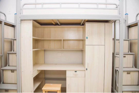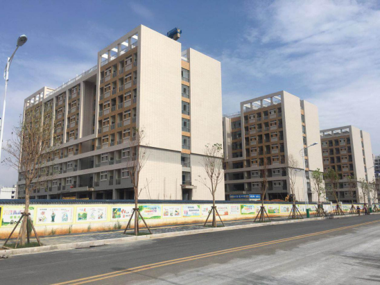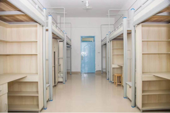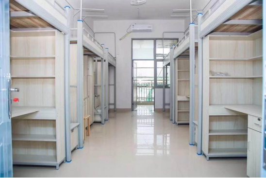 目前,学校新建5幢宿舍楼,每幢宿舍楼设置3部电梯,每间宿舍入住4至6人,统一配备2个卫生间、热水器、空调、洗衣机、上床下桌等设施设备,全新宿舍可住4800多人。该宿舍群将于9月投入使用,欢迎新同学入住。