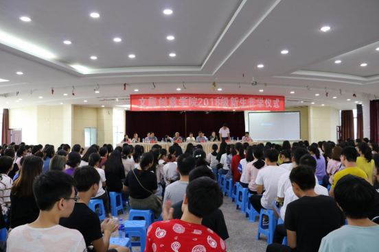 9月16日,文旅创意学院2018级新生开学仪式在学生活动中心举行。开学式有院班子成员、专业主任,新生辅导员、班主任和448位新同学参加。