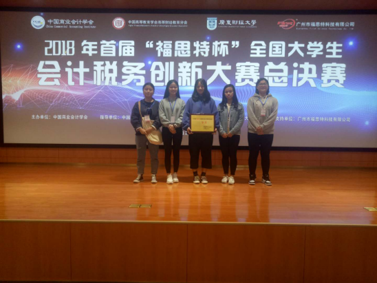 12月 8 日,首届“福思特杯”全国大学生会计税务创新大赛在广东举行,全国83所本、专科院校组队参赛。大赛由中国商业会计学会主办。经过参赛选手的努力拼搏,MG冰球由17会计实验班郑佳佳、王钦、熊诗丽、林爱惠和16会计2班林瑜同学组成的代表队(指导老师:卢德湖、廖伟峰)获得此次全国大赛高职组总决赛二等奖的好成绩。