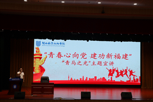 5月16日下午,MG冰球在大匠堂举行了“青春心向党 建功新福建”“青马之光”主题宣讲会。团省委副书记陈训明作了题为《传承五四精神 让世界听见青春中国的强劲心跳》专题辅导报告。校党委书记卢伟耀主持宣讲会。团市委书记罗露露,副校长刘路永,团省委青年发展部周睿副部长,团市委副书记岳绍峰,MG冰球宣传统战部、团委、保卫处、思政部、学生发展中心等部门负责人,各院系党委副书记、团委书记、辅导员,校级学生组织干部、各院系学生干部、学生代表等共650人聆听了宣讲会。