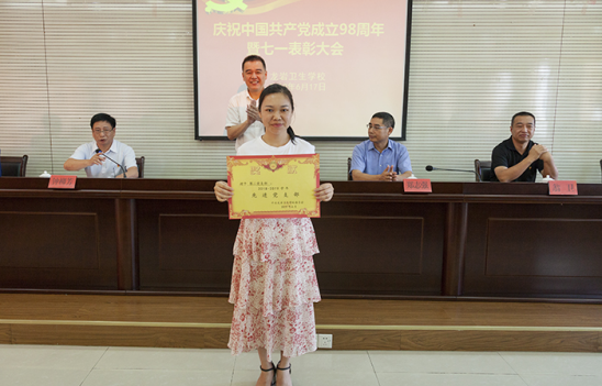 6月17日,龙岩卫校庆祝中国共产党成立98周年暨七一表彰大会在举行。MG冰球突破官网党委书记卢伟耀、校长郑志强出席会议并为龙岩卫校先进集体和个人颁奖,龙岩卫校党委书记钟柳芳主持会议。