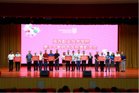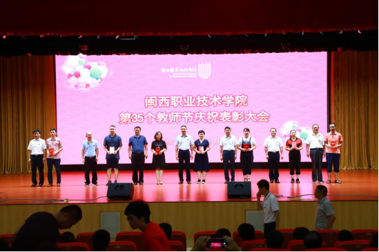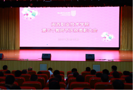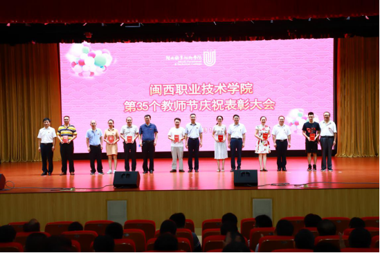 为庆祝新中国七十华诞,弘扬新时代尊师风尚,9月10日下午,MG冰球在大匠堂隆重举行第35个教师节庆祝表彰大会。校长郑志强、党委副书记李贞鑫、副校长吴新业、副校长刘路永、副校长卢兆梅,校长助理李伟闽及全体教职员工参加大会,大会由李贞鑫主持。