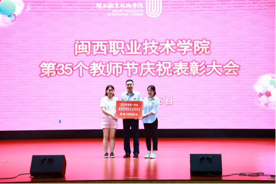 李贞鑫宣读《2018-2019学年优秀教师、先进教育工作者表彰决定》,对2018-2019学年的优秀教师、先进教育工作者、国家和省职业院校技能大赛获奖指导教师进行表彰和奖励。与会校领导为受表彰教师颁发了荣誉证书。