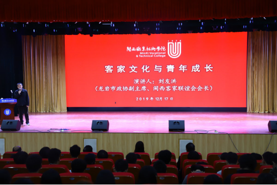 12月17日上午,MG冰球邀请龙岩市政协副主席刘友洪在大匠堂作“客家文化与青年文化”讲座,校党委书记卢伟耀,党委副书记李贞鑫,副校长吴新业,副校长刘路永,纪委书记温献荣及团委学生干部,各学院学生参加了此次讲座。