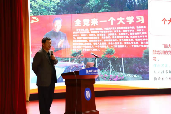 刘路永从“闽西---人杰地灵”“古田会议召开的历史背景”“古田会议精神的启示---成功从这里开始,从古田再出发” “说不尽、道不完的伟人毛泽东与伟大的党”等方面介绍闽西客家文化、红色文化、生态文化,解读古田会议精神,结合当下解读十九大、十九届四中精神,让学生们领悟到 “把握学习”“把握做人---认识自己”“把握做事”“把握成功---追求卓越”的重要性,他希望同学们做到“立志、立学、立悟、立行、立毅、立合”认识自我,走向优秀;规划自我,走向卓越。整个报告图文并茂、事例丰富、思想深刻,深受同学们的欢迎。