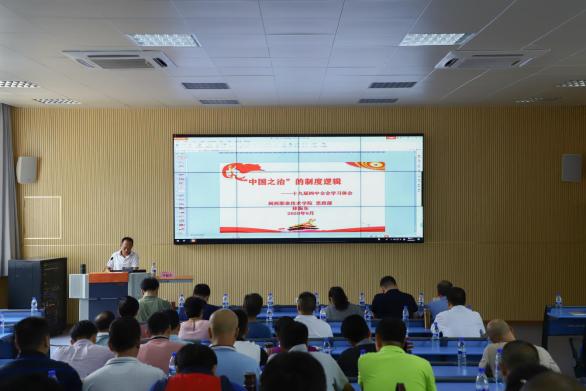 思政部林振东教授作《“中国之治”的制度逻辑--党的十九届四中全会学习体会》专题报告。林教授从历史逻辑、理论逻辑、实践逻辑和发展逻辑展开,详实细致地讲解了“中国之治”的“制”胜之道,源于制度的“根基、特色、追求、张力和品格”。报告启示我们要发挥制度优势,形成制度自觉;强化制度自信,推进制度自省!