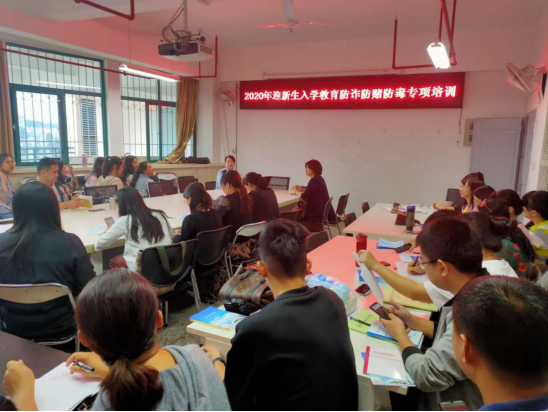 10月7日下午,教育与艺术学院在教学综合楼八楼会议室召开2020年入学教育防诈防毒防毒专项培训会议,龙岩市江山派出所教导员、红土公安警校老师吴冬云警官担任主讲,教育与艺术学院班子成员、全体训导师、辅导员、班主任及学生代表参加培训。