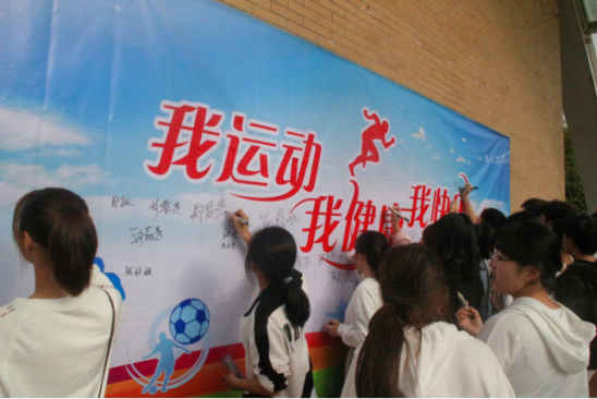 会后,全体新生进行“我运动、我健康、我快乐!”签名和健身跑活动。