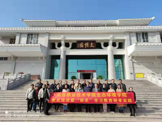 生态环境学院全体教师党员先后来到新泉军事整训旧址、武平文博园、武平云礤村,参观了望云草室、妇女夜校、红四军司令部、连南区革命委员会旧址、刘亚楼将军纪念官、武平历史博物馆、云礤村等,重温革命历史、学习习近平总书记“绿水青山就是金山银山”生态理念,进一步坚定了理想信念、提升了党性修养,践行初心使命,坚持立德树人,增强根植于中央苏区高水平高职院校的办学实力,努力争创“双高”校,为学校十四五开好局而扎实工作。