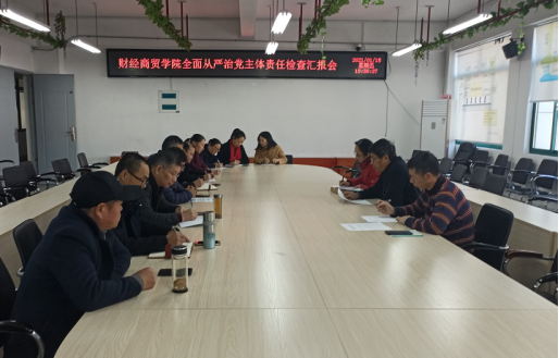 为深入贯彻落实党的十九届五中全会精神,推动学校全面从严治党向基层延伸,督促二级单位党组织切实落实好全面从严治党的主体责任,1月15日下午,MG冰球副校长吴新业等全面从严治党检查组一行调研组一行到财经商贸学院进行检查工作并举行全面从严治党主体责任检查汇报会,财经商贸学院班子成员、党委成员和各支部书记参加会议。