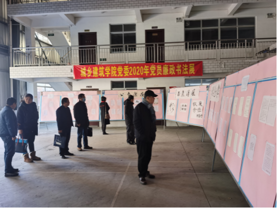 汇报会前,检查组一行参观了城乡建筑学院2020年度党员廉政书法展、廉政警句座右铭宣传栏。