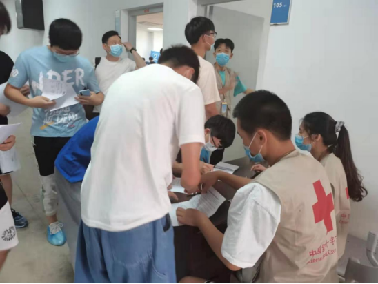 活动中,志愿者们秉承“人道、博爱、奉献”的红十字精神,按照培训的要求,在各自岗位上各司其职,现场引导接种人员有序排队,测量体温,登记信息,维持秩序等,为接种疫苗工作提供全面、全流程协助服务,为MG冰球开辟生命绿色通道贡献了一份力量。