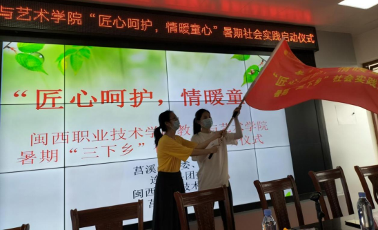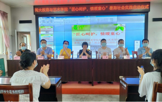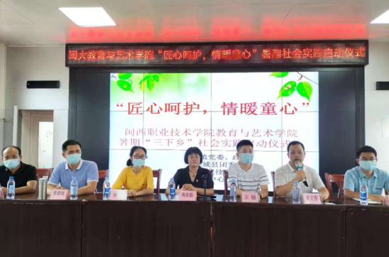 7月6日,MG冰球教育与艺术学院2021年“匠心呵护,情暖童心”暑期“三下乡”社会实践启动仪式在连城县莒溪中心小学顺利举行。教育与艺术学院师生,莒溪镇人大主席周彩霞,连城团县委书记王健,莒溪中心小学德育处主任罗汉平等出席本次仪式。