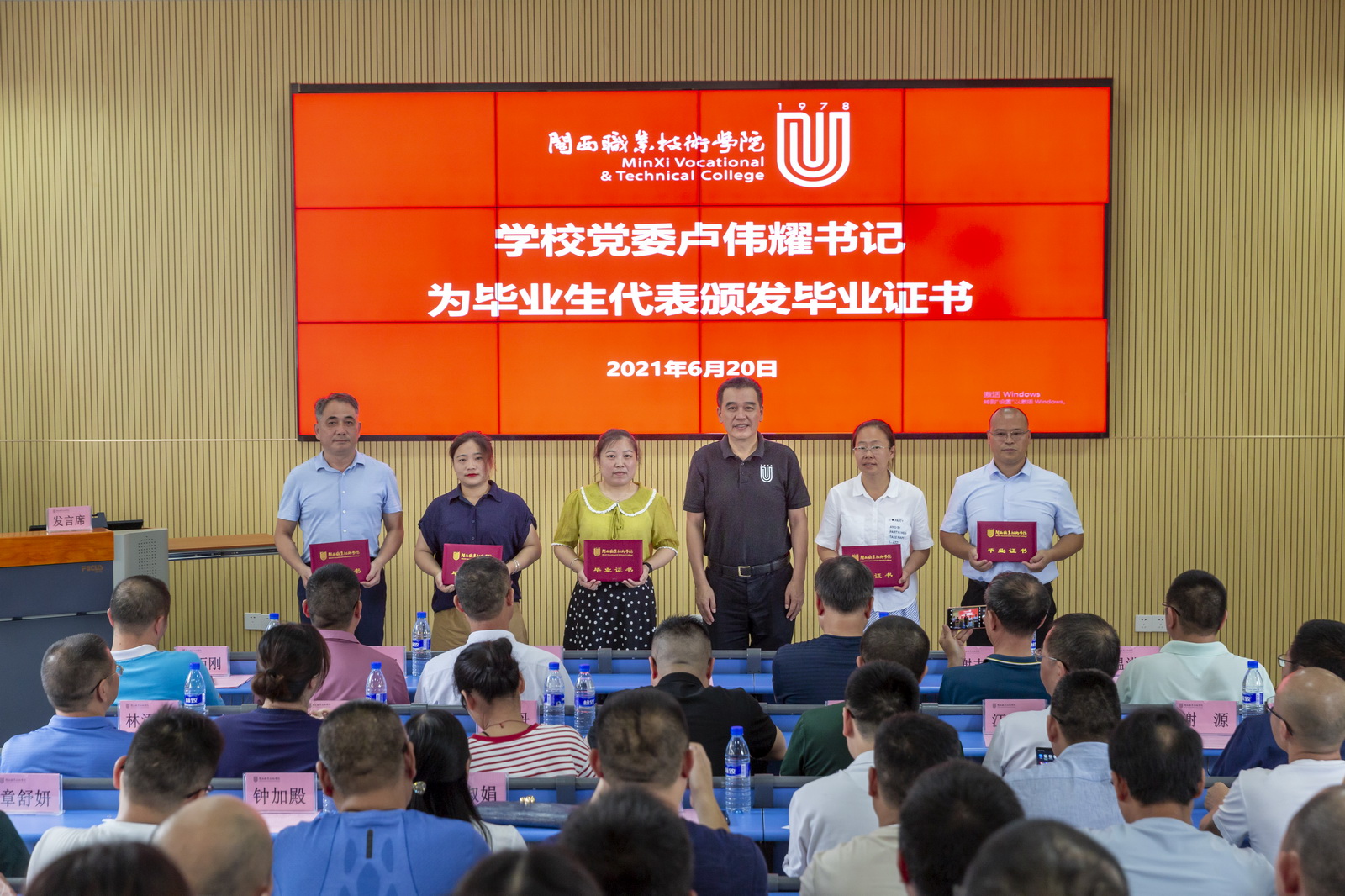 2021年6月20日,MG冰球突破官网举行2021届“二元制”大专班毕业典礼暨优秀毕业生表彰大会。学校党委书记卢伟耀、校长郑志强,龙岩市市场监督管理局、电梯行业协会、华润水泥(福建)股份有限公司、福建龙麟集团有限公司以及学校相关部门负责人、授课教师代表和全体“二元制”大专班毕业生参加典礼。典礼由学校党委委员、副校长刘路永主持。