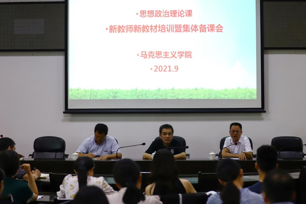 9月9日下午,马克思主义学院在第一会议室开展思政课新教师新教材培训课暨集体备课会,校党委书记卢伟耀、校长梁俊平及刘路永副校长,全体思政课教师参加会议。