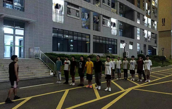 9月29日晚,文化与旅游学院组织学生正在团结里13栋楼下空地开展运动会方阵训练。