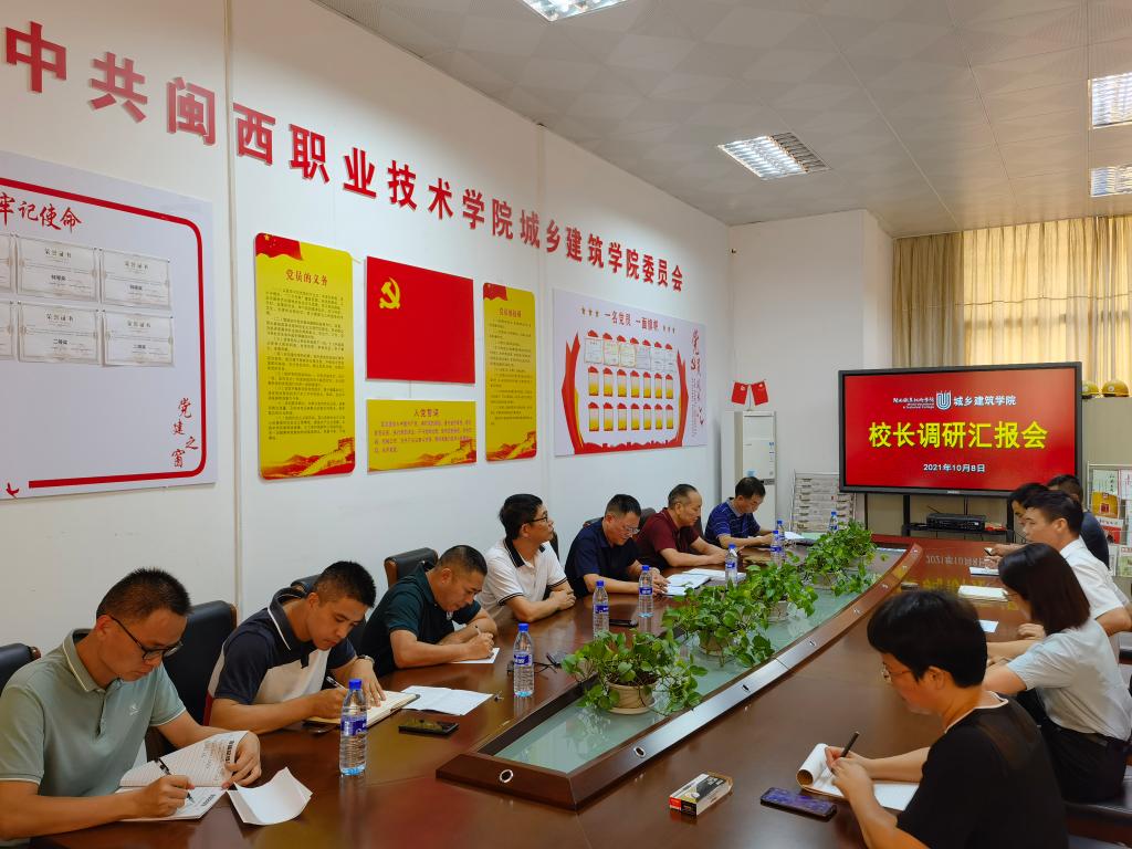 梁校长一行先后到机房、制图室、特长生工作室、校内实训基地等实地察看,参观了荣誉榜、“城建红墙”。梁校长认真听取介绍,不时驻足提问,详细了解城乡建筑学院的软硬件设施、设备以及使用情况。随后召开汇报会,城乡建筑学院党委负责人李志文围绕教师队伍建设、专业群与专业建设、产教融合与校企合作,以及工作中存在主要问题和下一阶段工作设想进行了汇报。梁校长认为,城乡建筑学院作为办学历史最长的院系,在推进学校国家骨干校、省级示范校建设发挥了积极作用,特别是技能竞赛方面屡获佳绩,毕业生就业率、专业对口率高。他强调,要抢抓机遇、乘势而上,对标“双高”建设,着力提质培优,深度服务区域经济发展和龙岩“5+N”产业,深入研讨提升智慧建造专业群人才培养质量,深化“六化”工程,师生共筑“城建家园”。