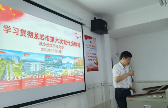 会上,城乡建筑学院党委负责人传达了市第六次党代会精神,他提出,要深刻领会、准确把握市第六次党代会的精神实质,要精心组织、周密部署,把学习宣传贯彻市第六次党代会精神与学习贯彻习近平总书记“七一”重要讲话、来闽考察重要讲话精神、与深入推进党史学习教育和“三再”活动结合起来,通过“三会一课”、主题党日活动等方式认真组织学习,迅速把党代会精神传达到每一位党员干部,切实把思想和行动统一到党代会精神上来。