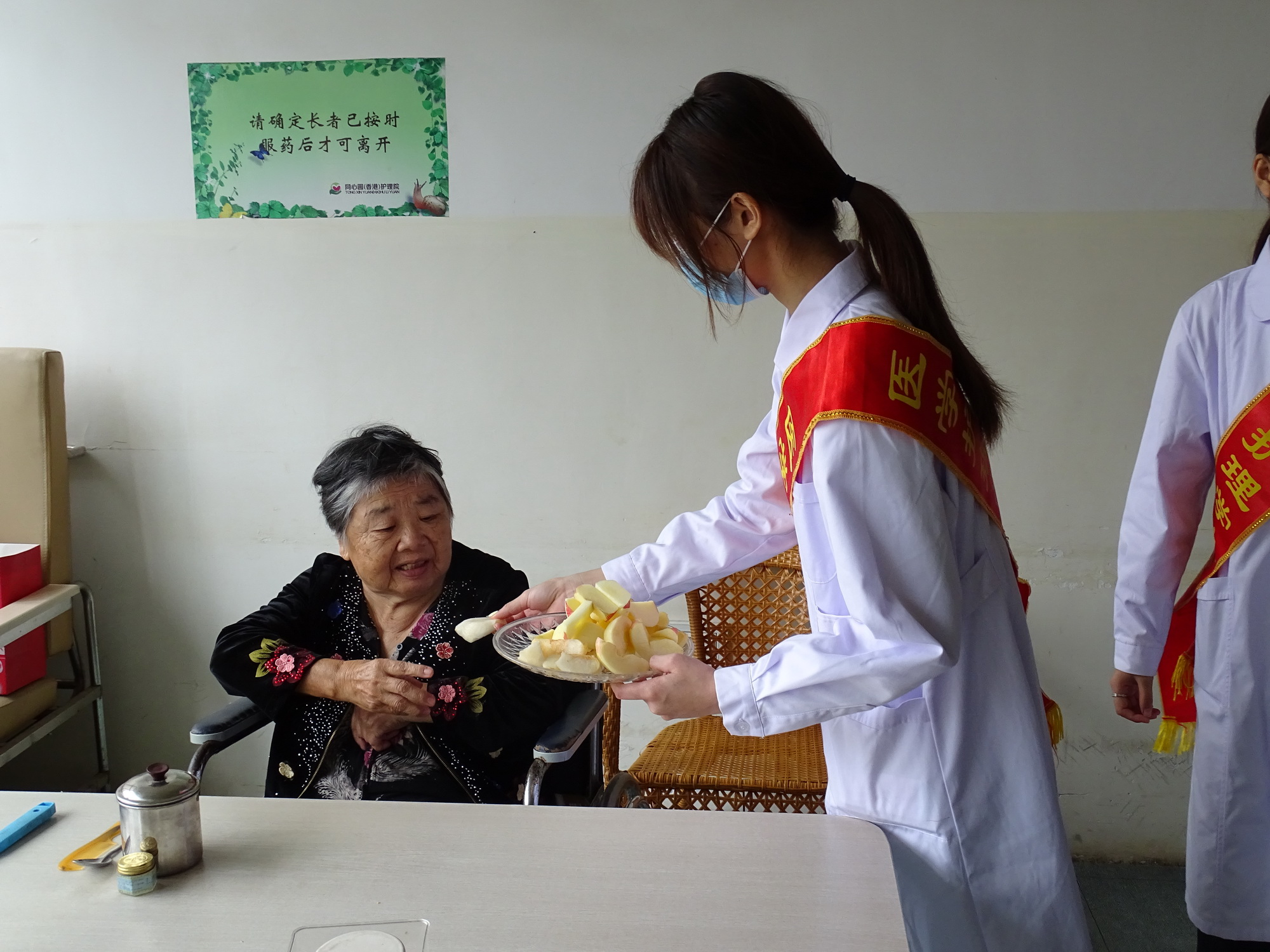 10月23日起,每周六上午医学护理学院青年志愿者协会都将走进龙岩市同心圆(香港)护理院开展“情暖耄耋,关爱老人”活动。志愿者走到老年人中间,坐在老人身边陪着老人闲话家常,详细了解老人们的生活和身体健康情况,将水果等健康食品送到老人手里,休息室内传出了阵阵欢声笑语。莫道桑榆晚,人间重晚情。通过志愿活动,不仅弘扬了敬老、爱老、助老的传统美德,更引导青年志愿者增强责任意识、服务意识。