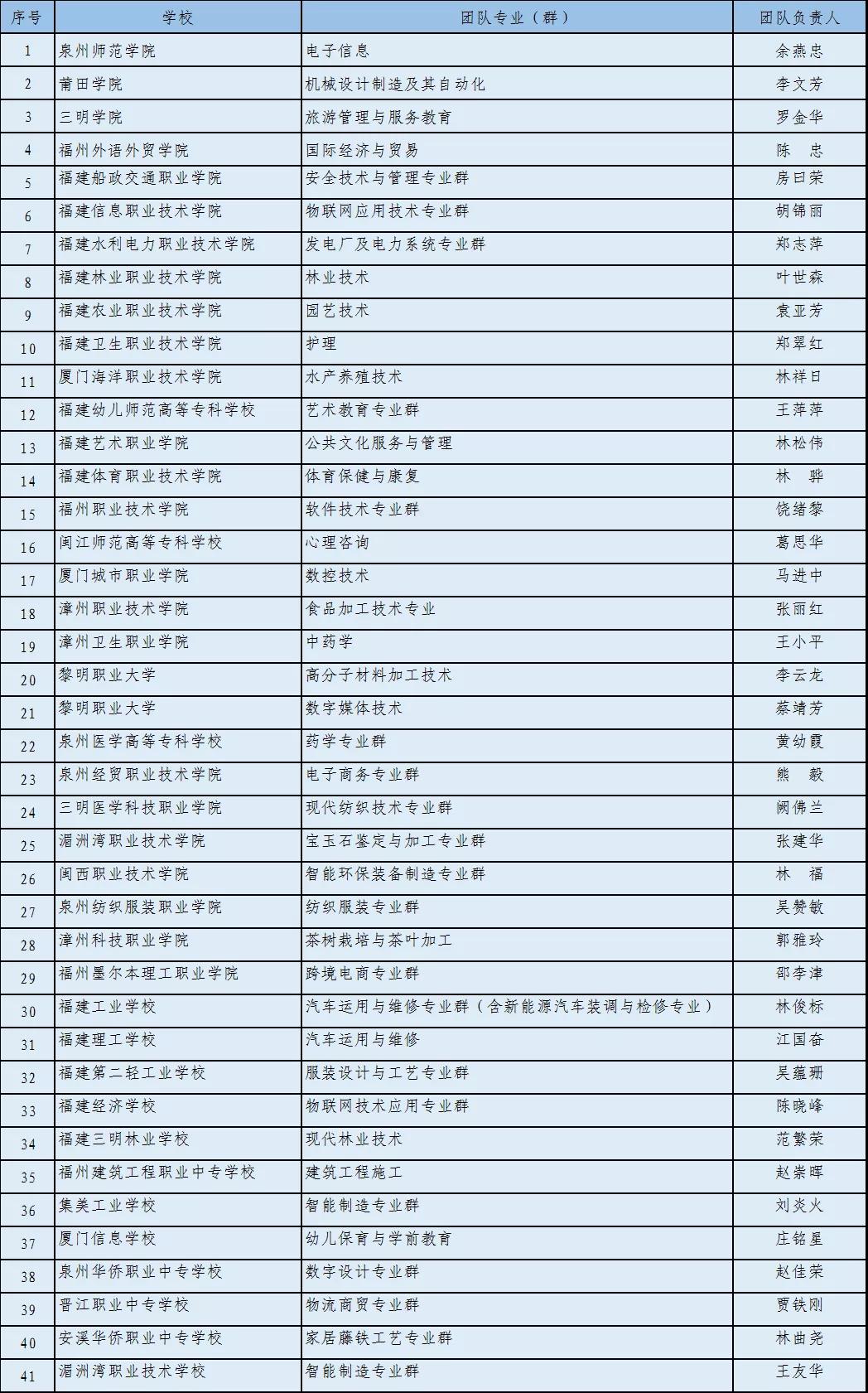 根据《福建省教育厅关于印发福建省职业教育教师教学创新团队建设方案的通知》、《福建省教育厅办公室关于遴选首批省级职业院校教师教学创新团队的通知》,经学校申报、专家评审、公示等程序,日前,省教育厅确定首批省级职业院校教师教学创新团队立项建设单位41个,并公布名单。MG冰球林福教授领衔的智能环保装备制造专业群入选。
