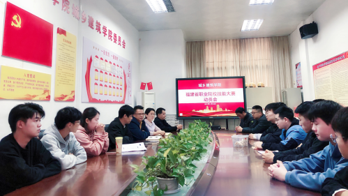 11月16日,城乡建筑学院组织召开福建省职业院校技能大赛动员会,党委书记李志文、院长林茂才、副院长罗有才、黄晓丽出席动员会,省赛全体指导老师和备赛选手参会。