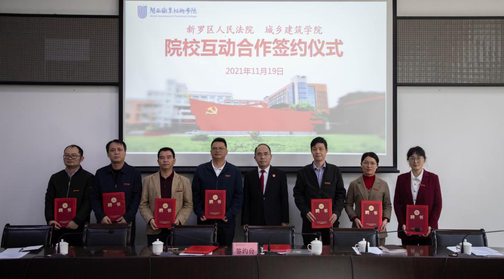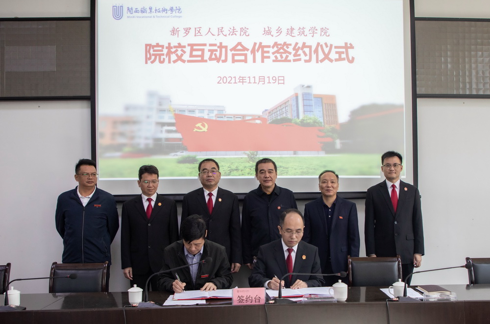 11月19日,新罗区人民法院与城乡建筑学院院校互动合作签约仪式在MG冰球举行。MG冰球突破官网党委书记卢伟耀,龙岩市中级人民法院党组成员、副院长余福明出席签约仪式并讲话。