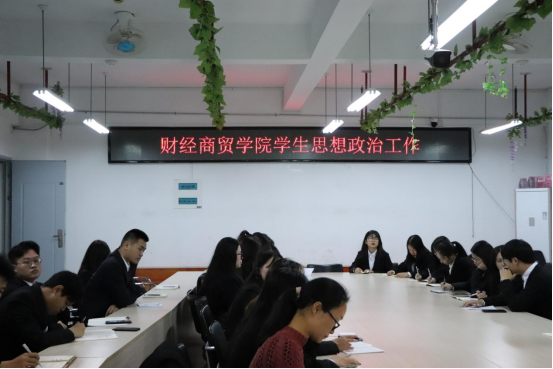2021年12月8日,财经商贸学院党委副书记林照兴在实训楼八楼商务谈判室,向全体院学生两委干部上了一堂生动的思想政治课。