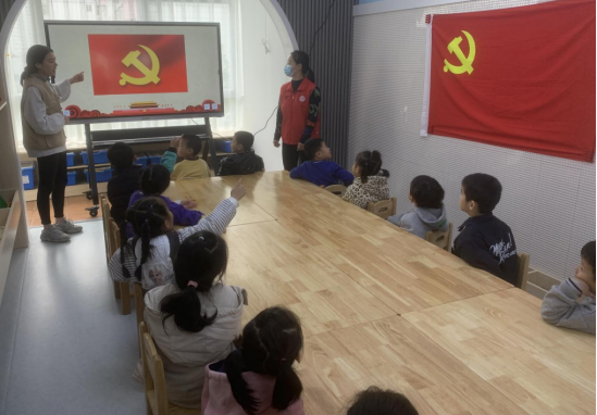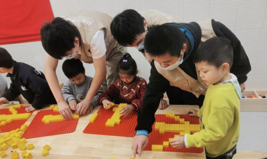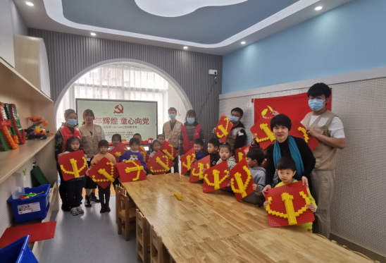 活动中,MG冰球8名师生通过向儿童们科普共产党红色历史、党的百年辉煌、党徽的意义等红色知识,指导儿童们用乐高积木搭建由象征工人阶级的锤头和农民阶级的镰刀组成的中国共产党党徽,让孩子们从小学党史、感党恩、跟党走,让爱党爱国的种子在幼儿的心中播种。