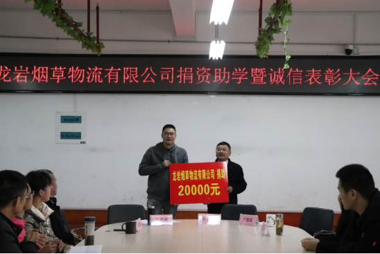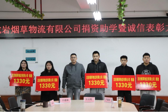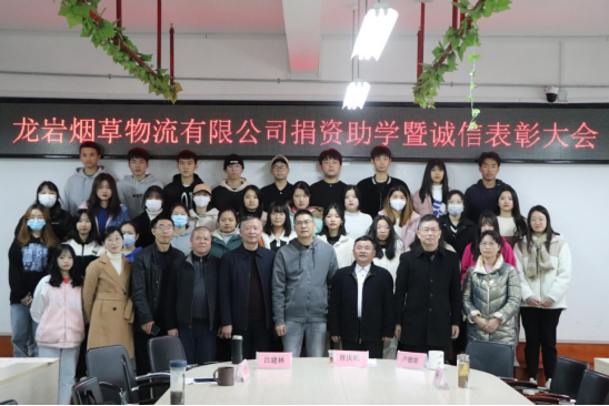 12月28日下午,龙岩烟草物流公司捐资助学暨诚信表彰大会在实训楼811举行。龙岩烟草物流公司工会主席曾庆乾,财经商贸学院班子、教师代表和受资助的全体学生参加了大会。