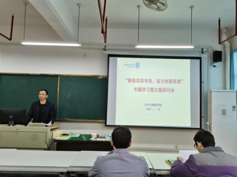 为推动“双高计划”项目建设,全面激发教职工参与学校改革发展和“双高计划”建设的积极性,1月10日上午,文化与旅游学院在实训楼1010开展“聚焦建功有我、奋力创建双高”专题学习研讨活动。